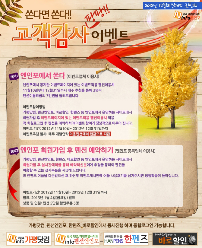 À̺¥Æ®±â°£Àº 2012³â 11¿ù10ÀÏ~2012³â 12¿ù31ÀϱîÁöÀ̸ç, ¹ßÇ¥´Â 2013³â 1¿ù4ÀÏ ¿£ÀÎÆ÷¿î¿µ»çÀÌÆ®